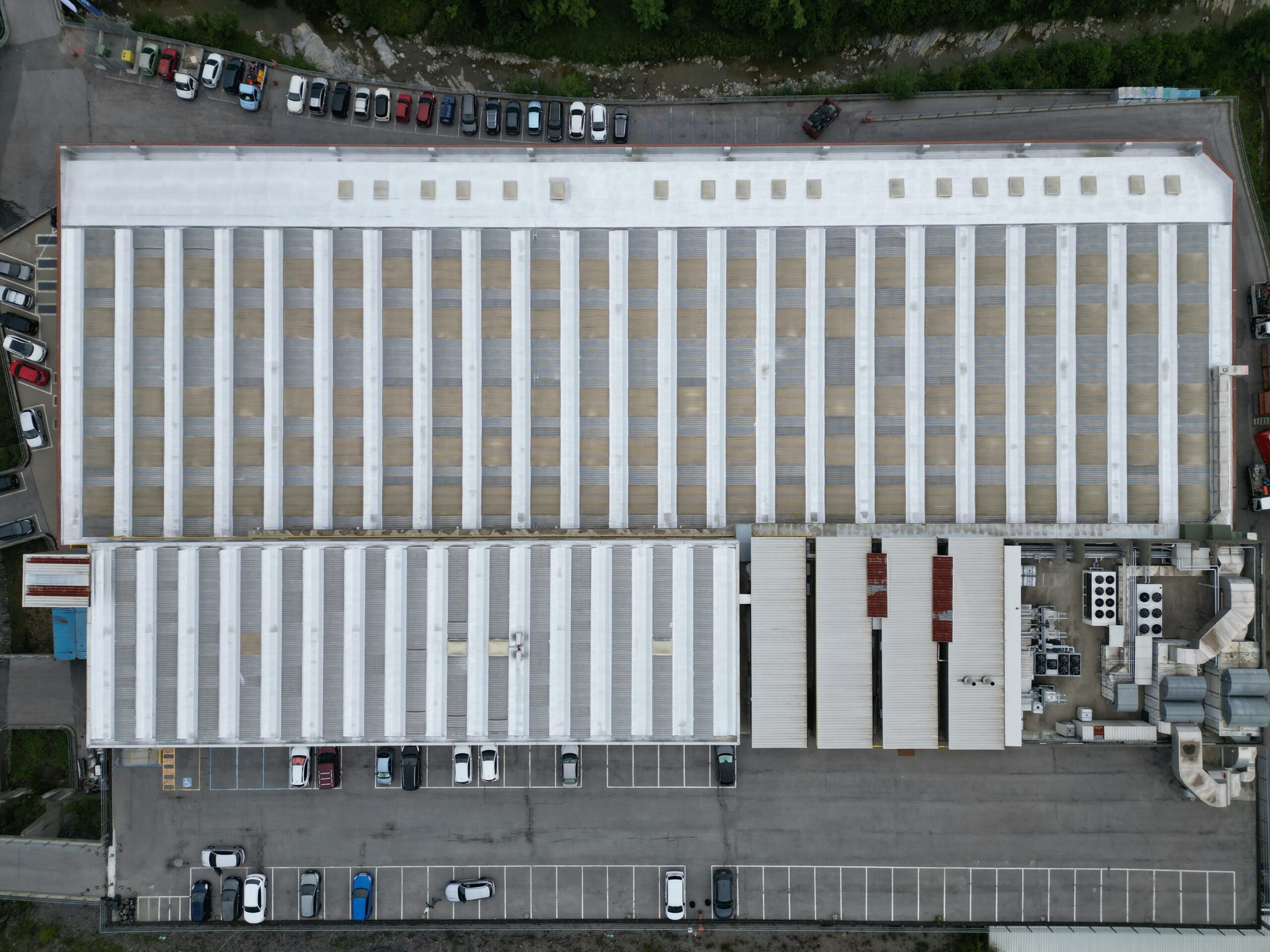 - Fornitura e posa di strato antisolare alluminio su coperture produzione e uffici;